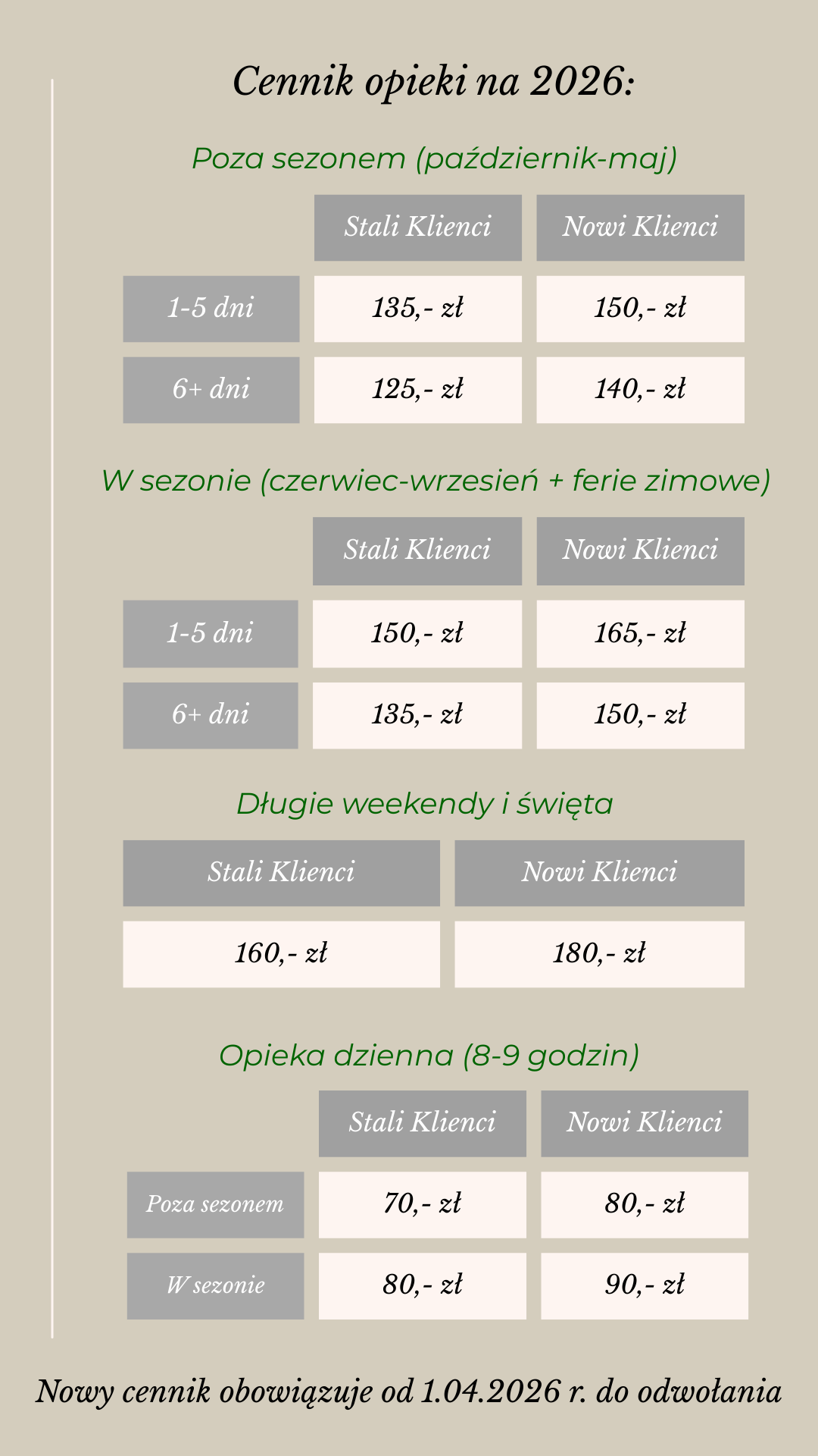Opieka realizowana jest na podstawie Regulaminu Opieki, którego akceptacja jest równoznaczna z zawarciem umowy o świadczenie usług.
